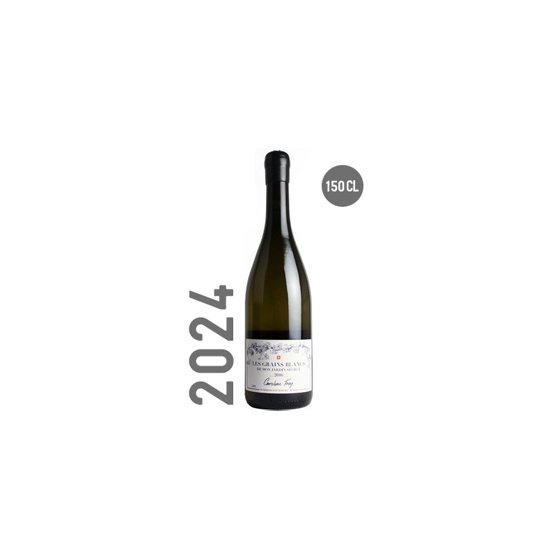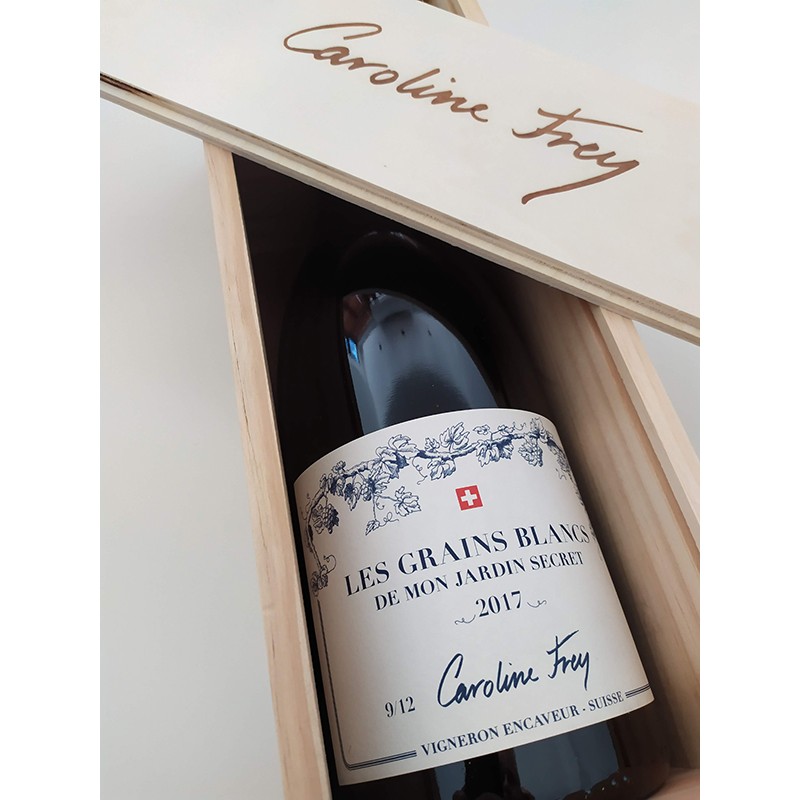 "Après un travail titanesque dans les vignes de ses 1200 m2 de jardin, Caroline Frey a signé en 2016, son tout premier millésime, un vin unique au monde, fait par 2 mains uniquement : les siennes. Et le résultat est franchement superbe ! Né de petite arvine, chasselas et de sylvaner, sur un socle granitique de toute beauté, ce blanc au floral renversant m'a ébloui dès le premier tour de verre par sa pureté, son équilibre, sa patine quasi bourguignonne, son allonge. Impossible en goûtant à cette nouvelle pépite de ne pas vous la proposer, j’aurais pu acheter les 500 bouteilles produites si j'avais pu.